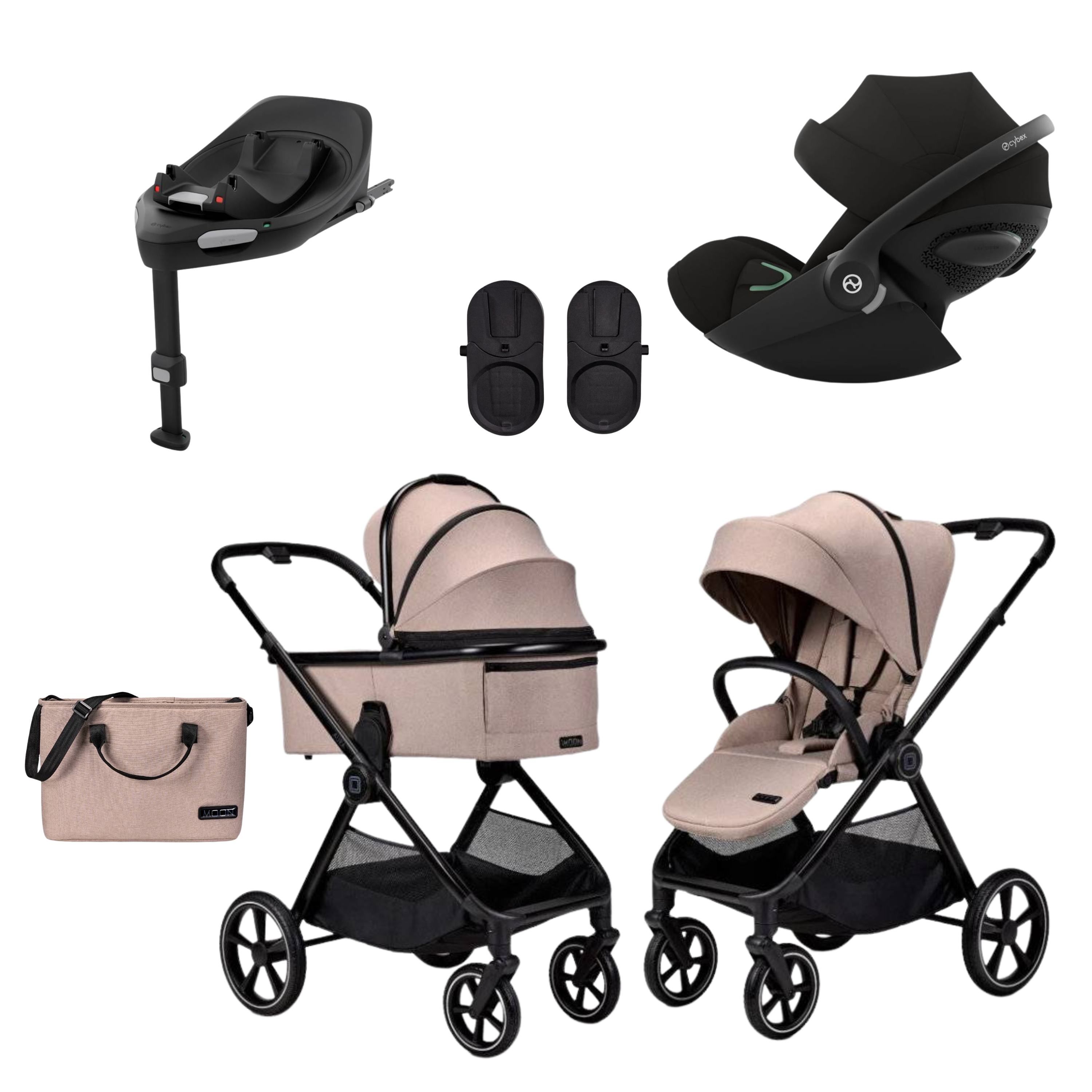 Set 4v1 Kočík Moon Aura, Autosedačka Cybex Cloud G i-Size, Adaptéry, Príslušenstvo