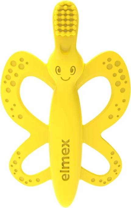 Zubná kefka Elmex oboznamuje bábätká s čistením zubnou kefkou. Je špeciálne navrhnutá tak, aby uľahčila prerezávanie prvých zúbkov. Flexibilné rukoväte sú navrhnuté pre malé detské rúčky. Produkt je testovaný na použitie v chladničke aj vo vriacej vode. Vyrobený zo 100% potravinárskeho silikónu.