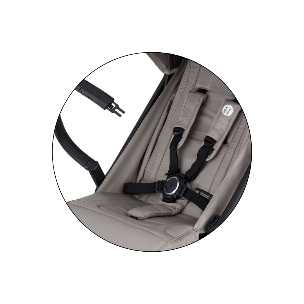 - odnímateľné madlo potiahnuté eko kožou, výklopné do strany pre jednoduchší prístup k dieťaťu.