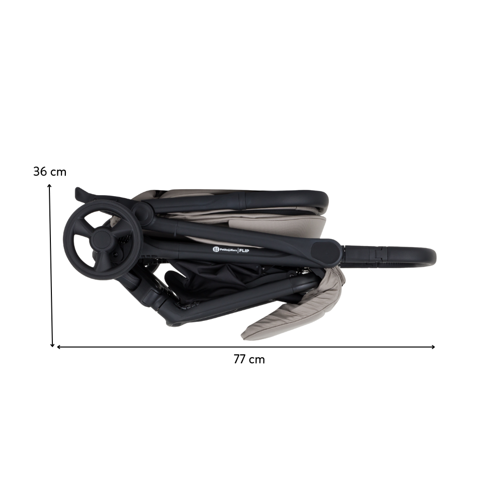 Petite&Mars Flip je ľahký mestský kočík vhodný aj na cestovanie. Skladá sa jednou rukou do kompaktných rozmerov. Má dlhú chrbtovú opierku a odklápacie detské madlo.
